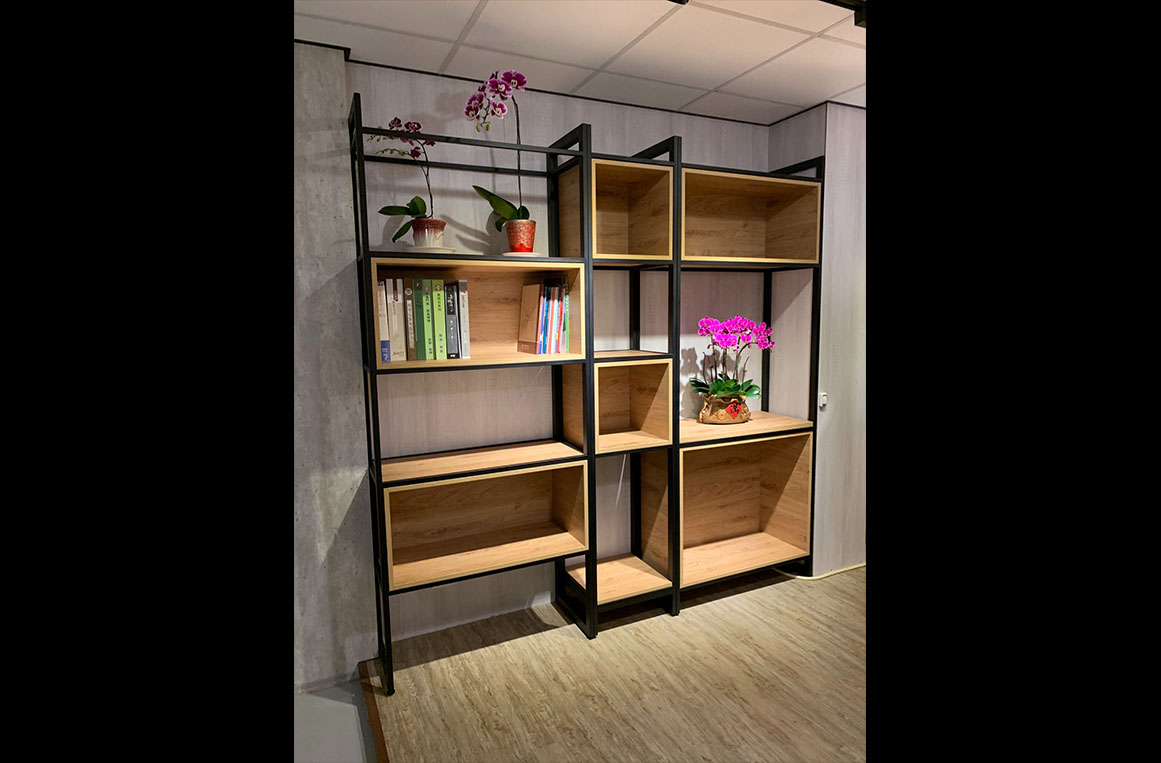 以錏管焊接成形後,再經過粉體烤漆,搭配各式板料,營造出不同於櫥與櫃的設計風格